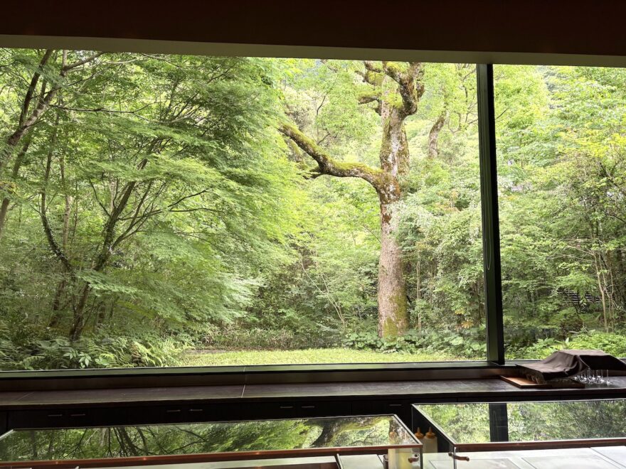 大きな窓の外からは宿のシンボルともいえる楠の大木も見えます