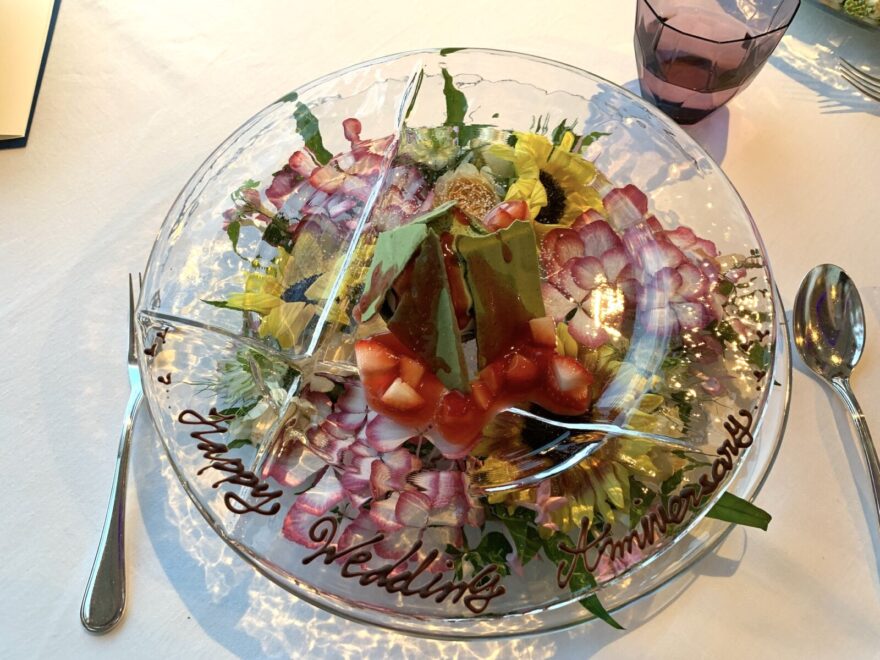 記念日のデザートプレートもゴージャスで嬉しかったし、