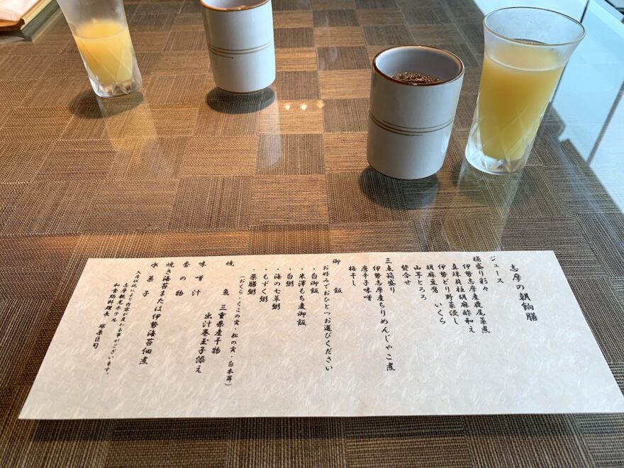 2泊したので、2泊目は「浜木綿」という日本料理での朝食にしてみたのですが、