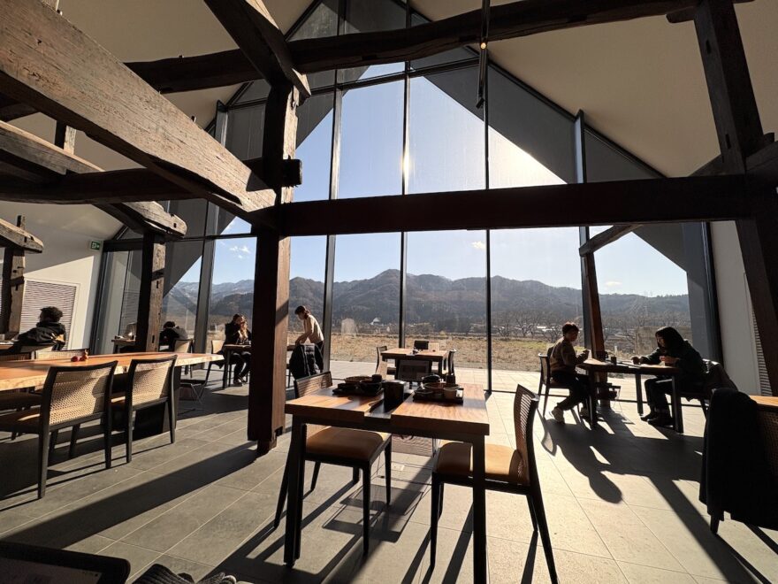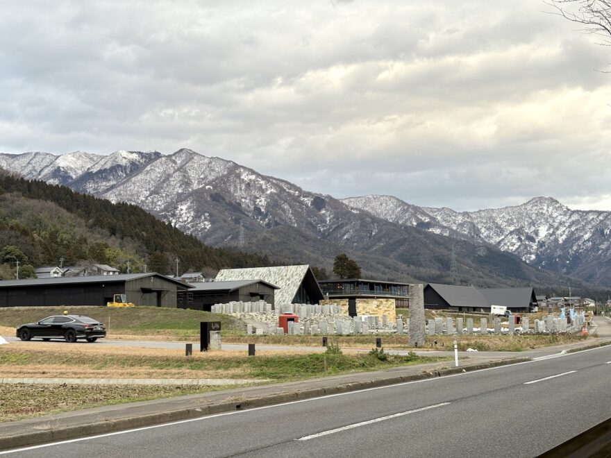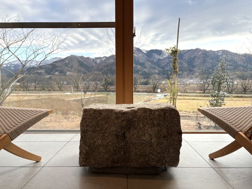 そして、川から戻る時に見えたESHIKOTO越しの山々が圧巻。