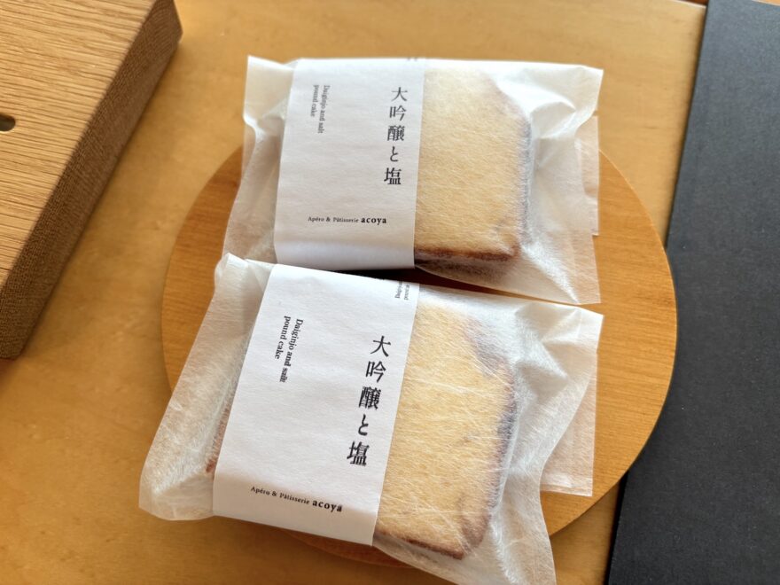 ウェルカムスイーツは、大吟醸と塩のパウンドケーキ。