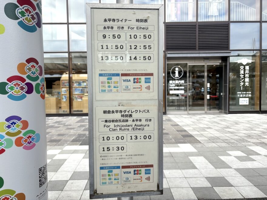 そして東口にあるバス停(1番乗り場)から12:55発の永平寺ライナーに乗り換え、