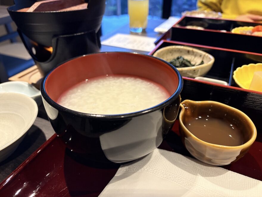 熱々のお粥と朝鍋で冷えた体も温まり、