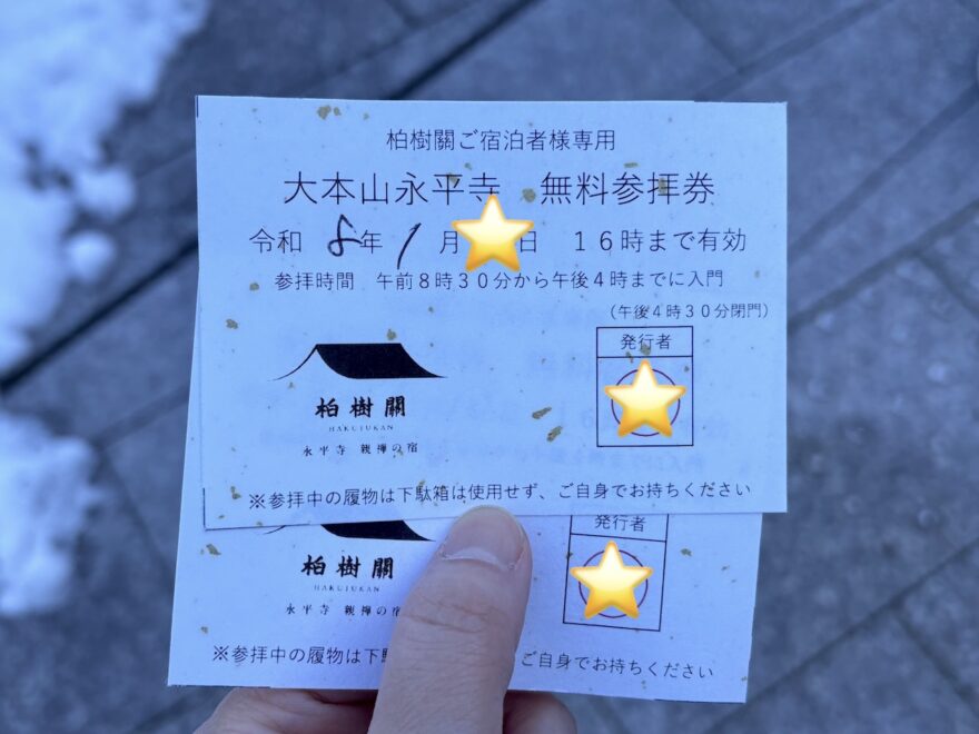 「永平寺 親禅の宿 柏樹關(はくじゅかん)に宿泊することで、
