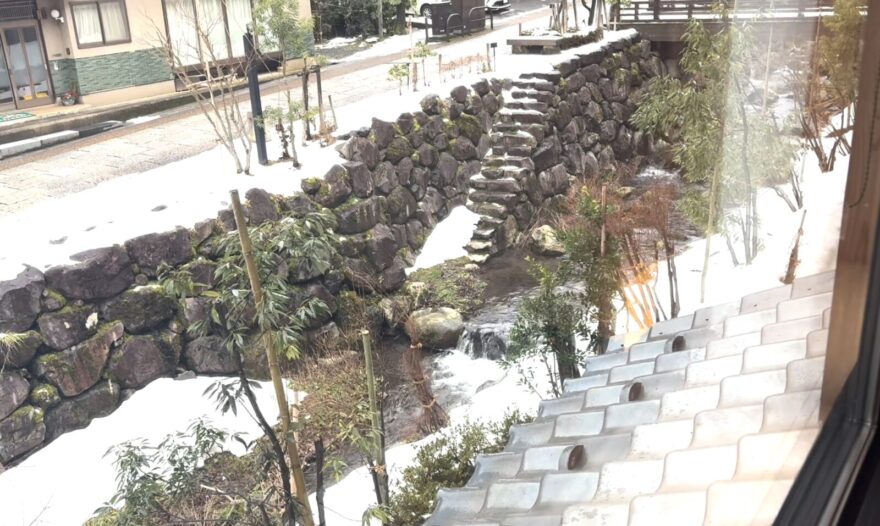 宿の前には永平寺川。清らかなせせらぎにも癒されます。