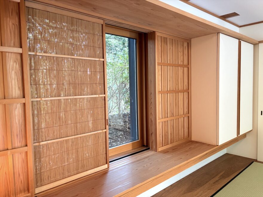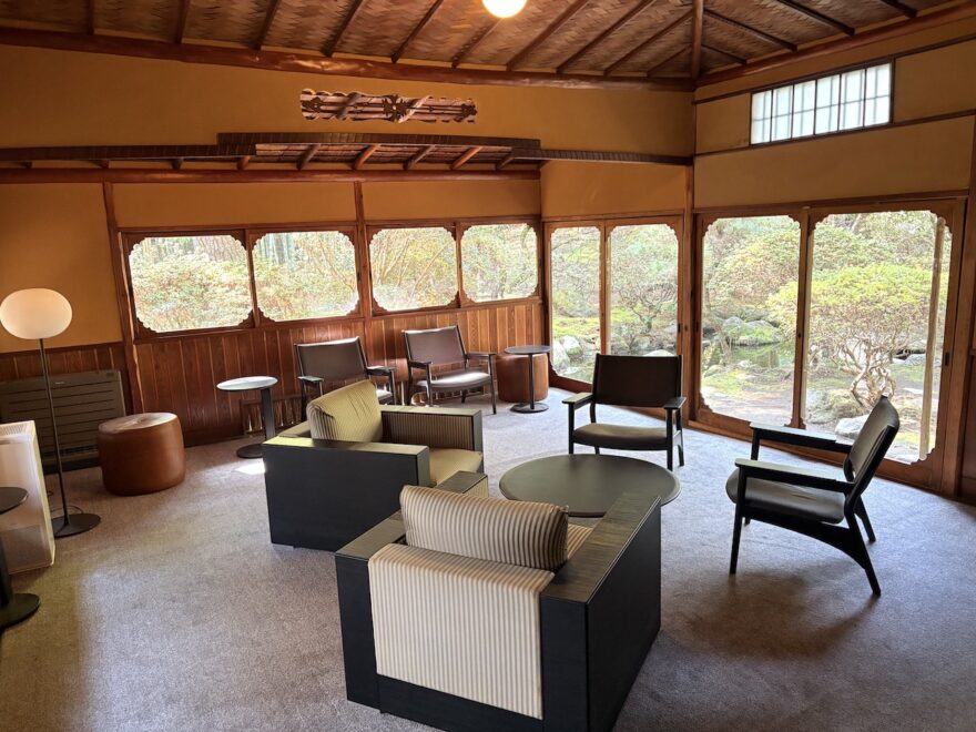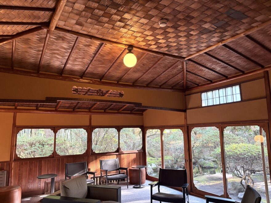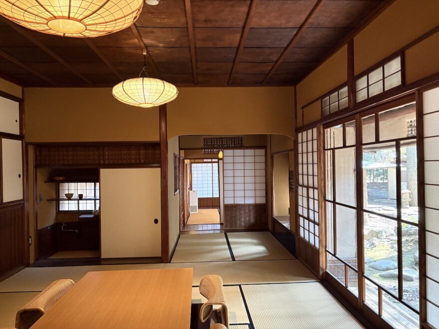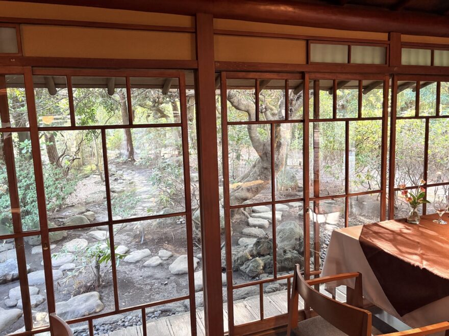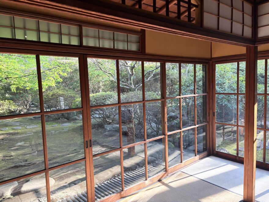 数寄屋建築には珍しくガラス張りのようなつくりで、