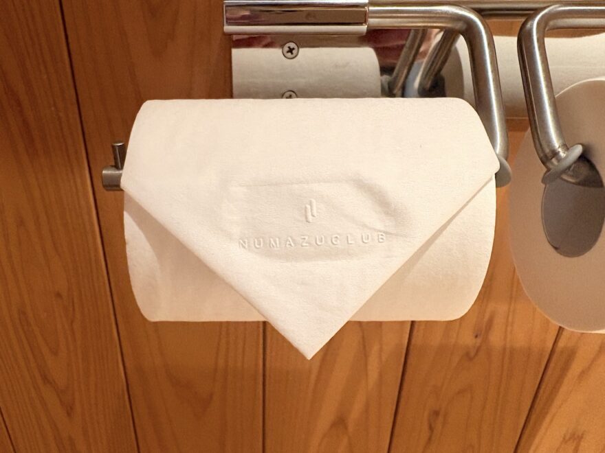 トイレットペーパーまで沼津倶楽部のロゴが。
