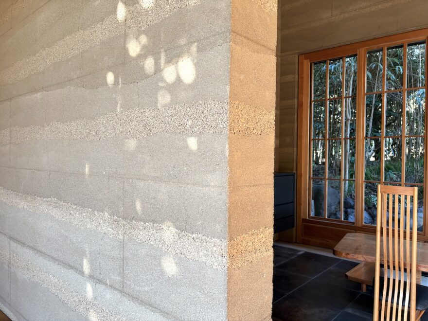 富士山の砂と土を積層させて作った版築壁と言われるものだそうで、