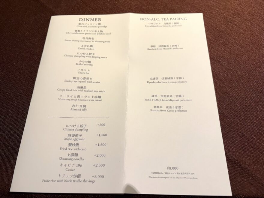 夕食(モダンチャイニーズのコース)