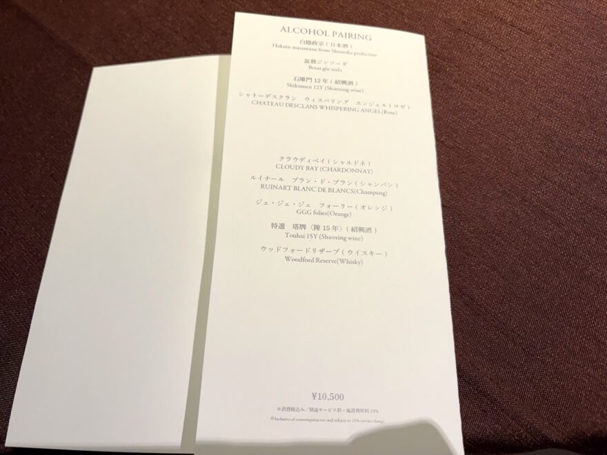 ちなみに、料理に合わせたペアリングメニューもあり。