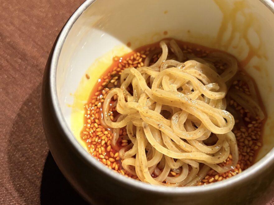 さらに、オリジナルの配合で製麺した山椒麺をつけて食べる、という、
