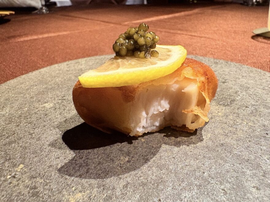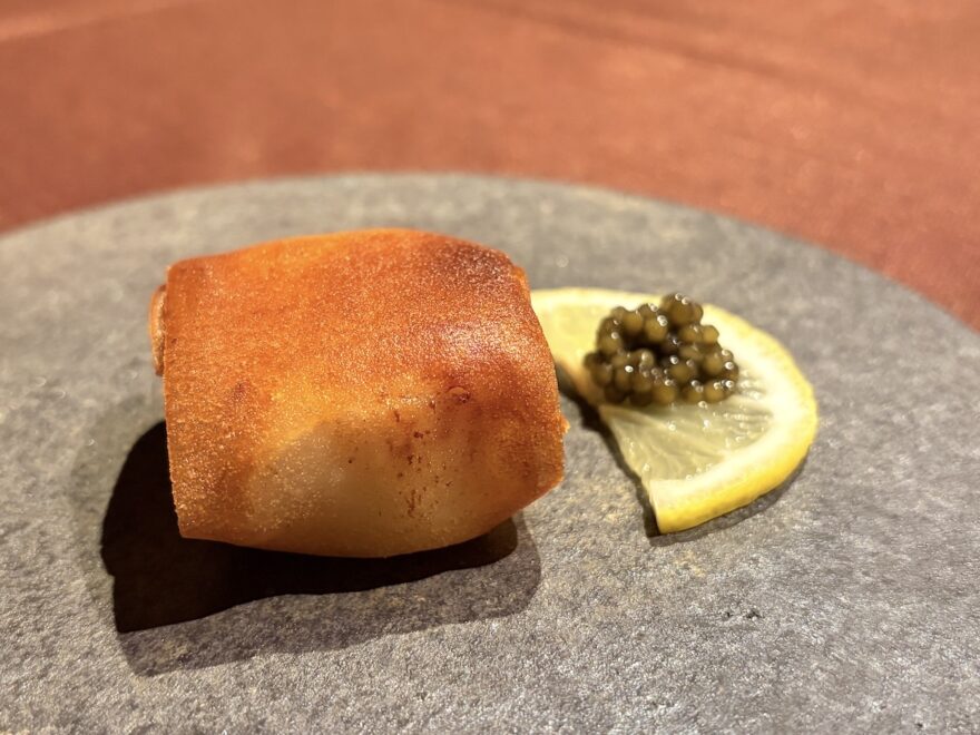 レモンなしでキャビアだけで食べた方が美味しかったかも。