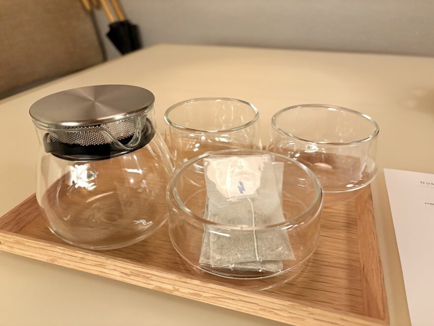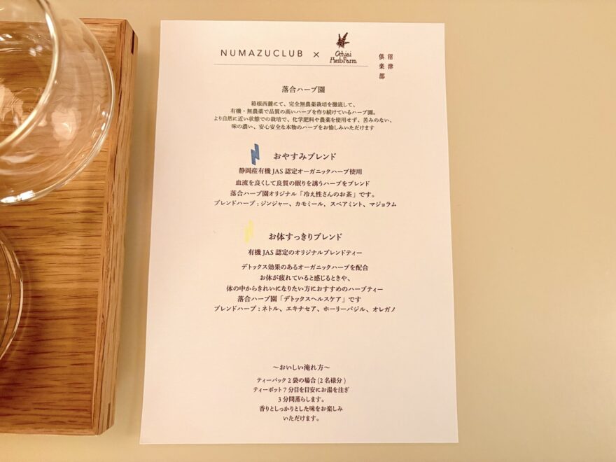 テーブルの上にはハーブティー。