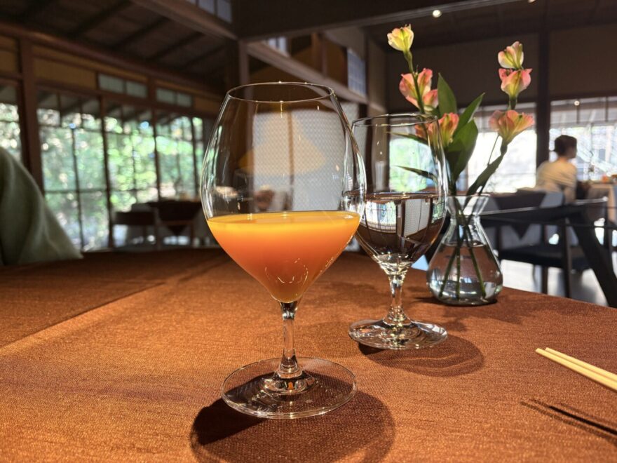 ドリンクメニューから地元の「寿太郎みかんジュース」をチョイス。(ワンドリンク無料)