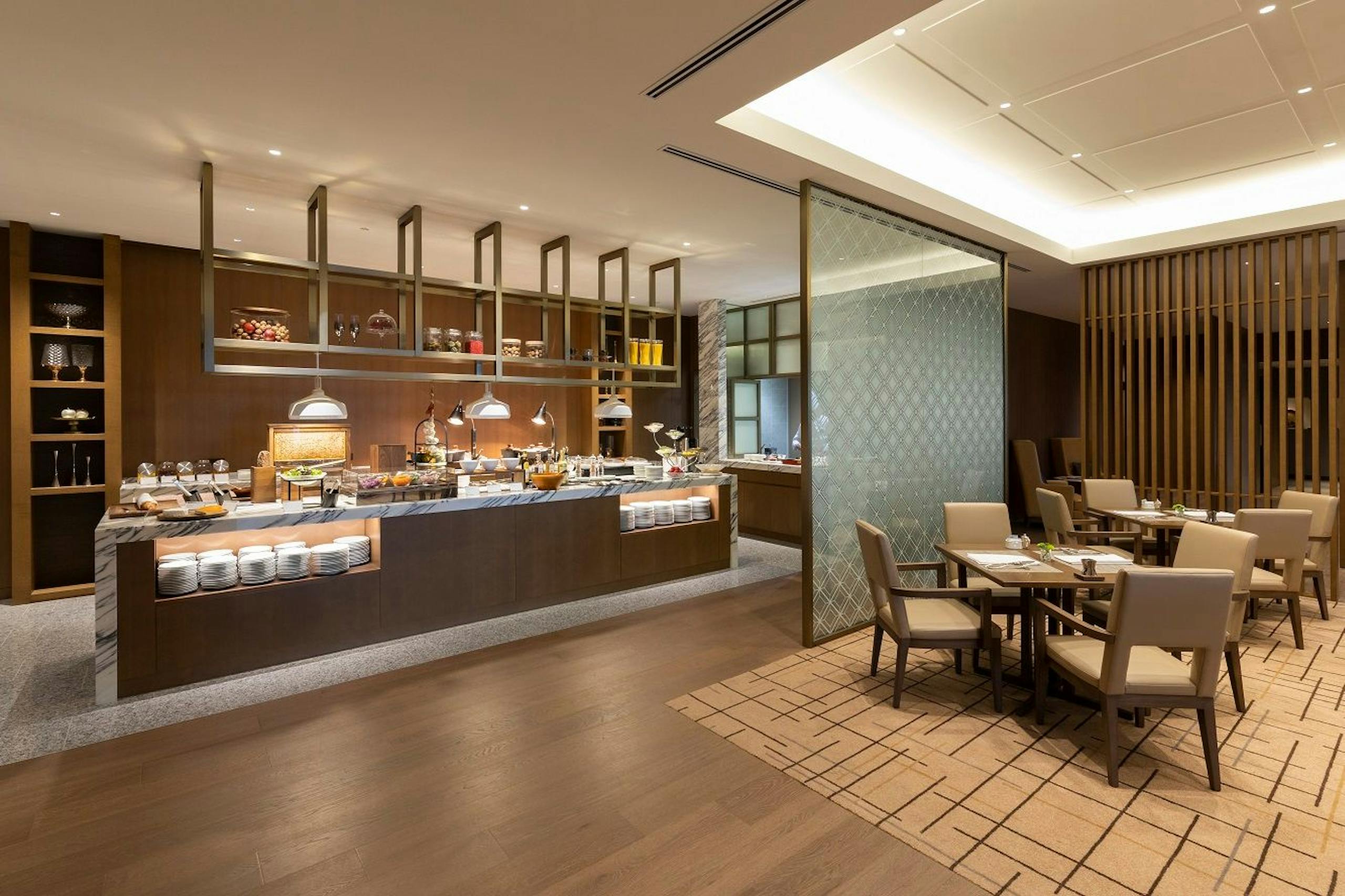 中は、広さ約430平米だそうで結構広々。大きなホテルだけに席数も多め。