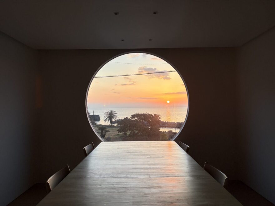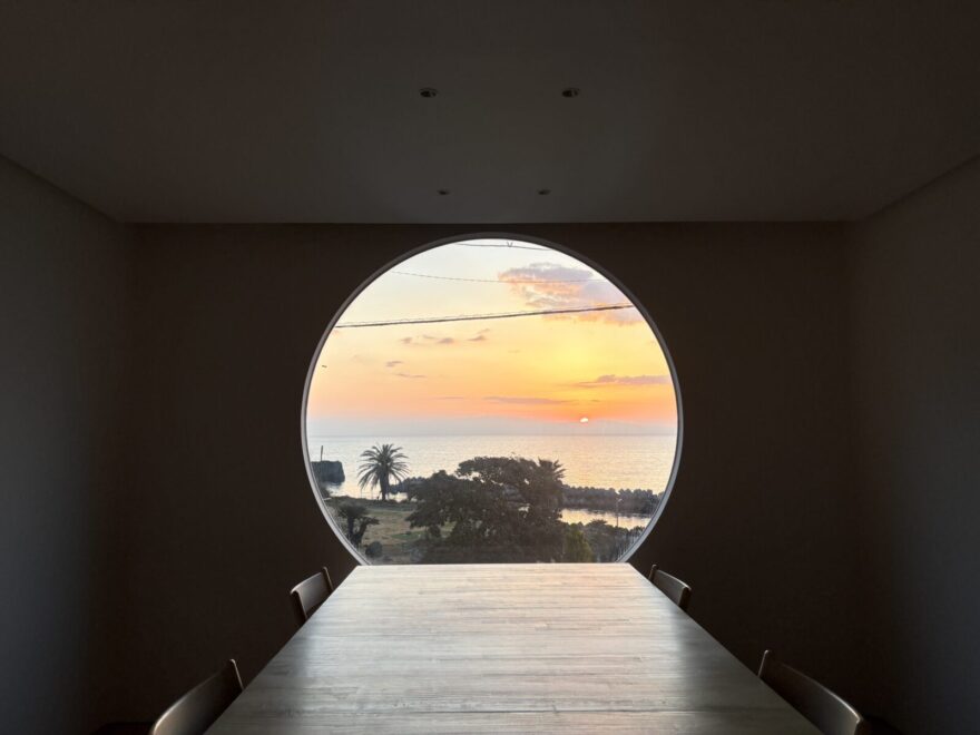 満月のダイニングで日の出を眺める朝時間