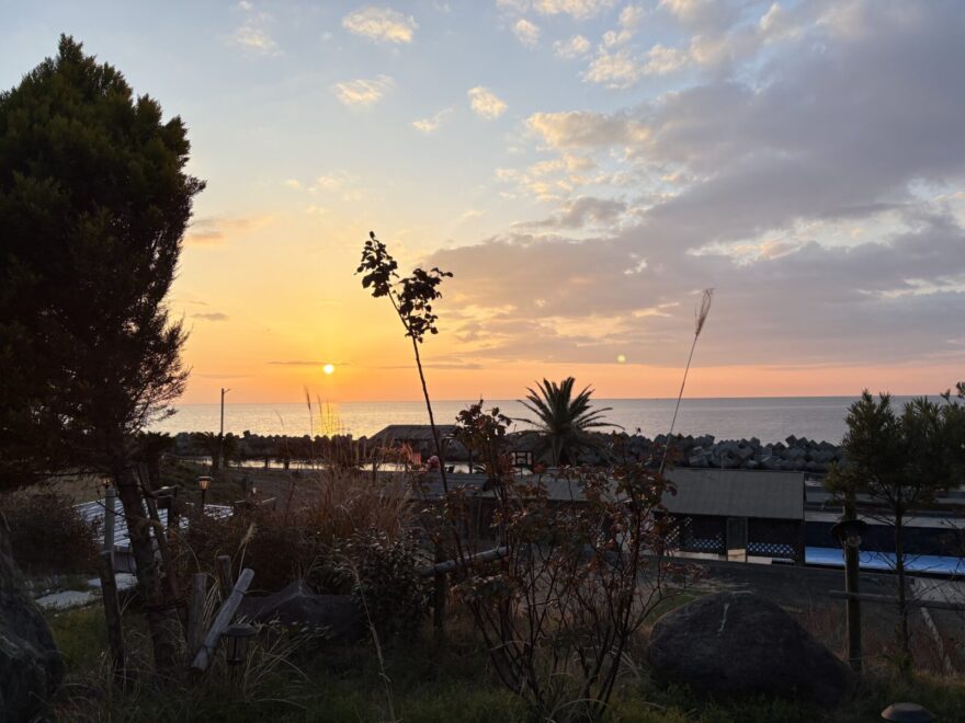 相模湾の水平線が少しずつ赤らんでくるのをぼーっと眺めていると、