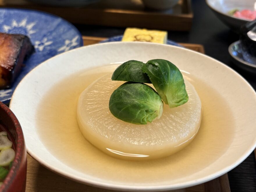 この芽キャベツをのせたふろふき大根も出汁が染みてておいしかった。