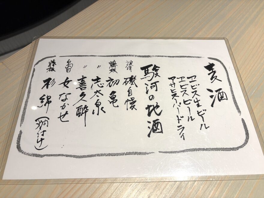 お酒は静岡だけに駿河の地酒が多めですね。