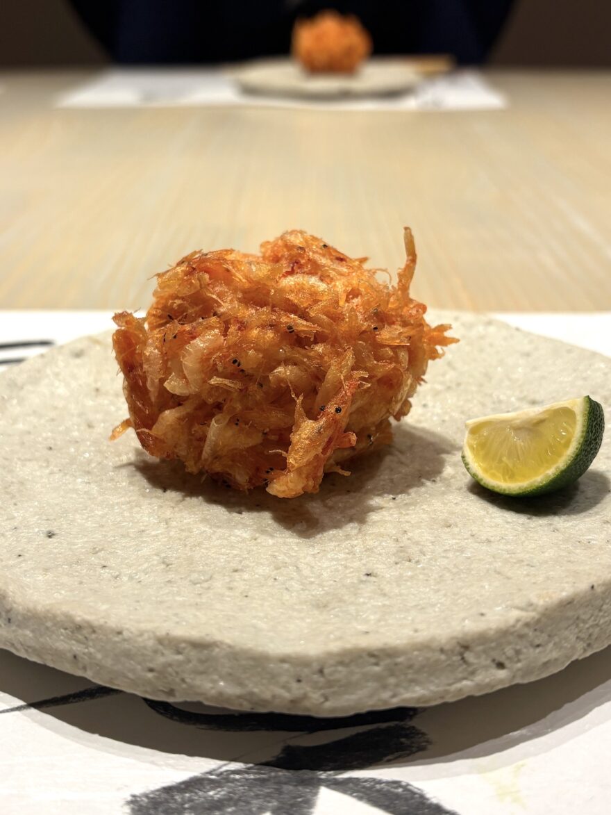 そして6品目は、丸い大きな桜海老のかき揚げ!