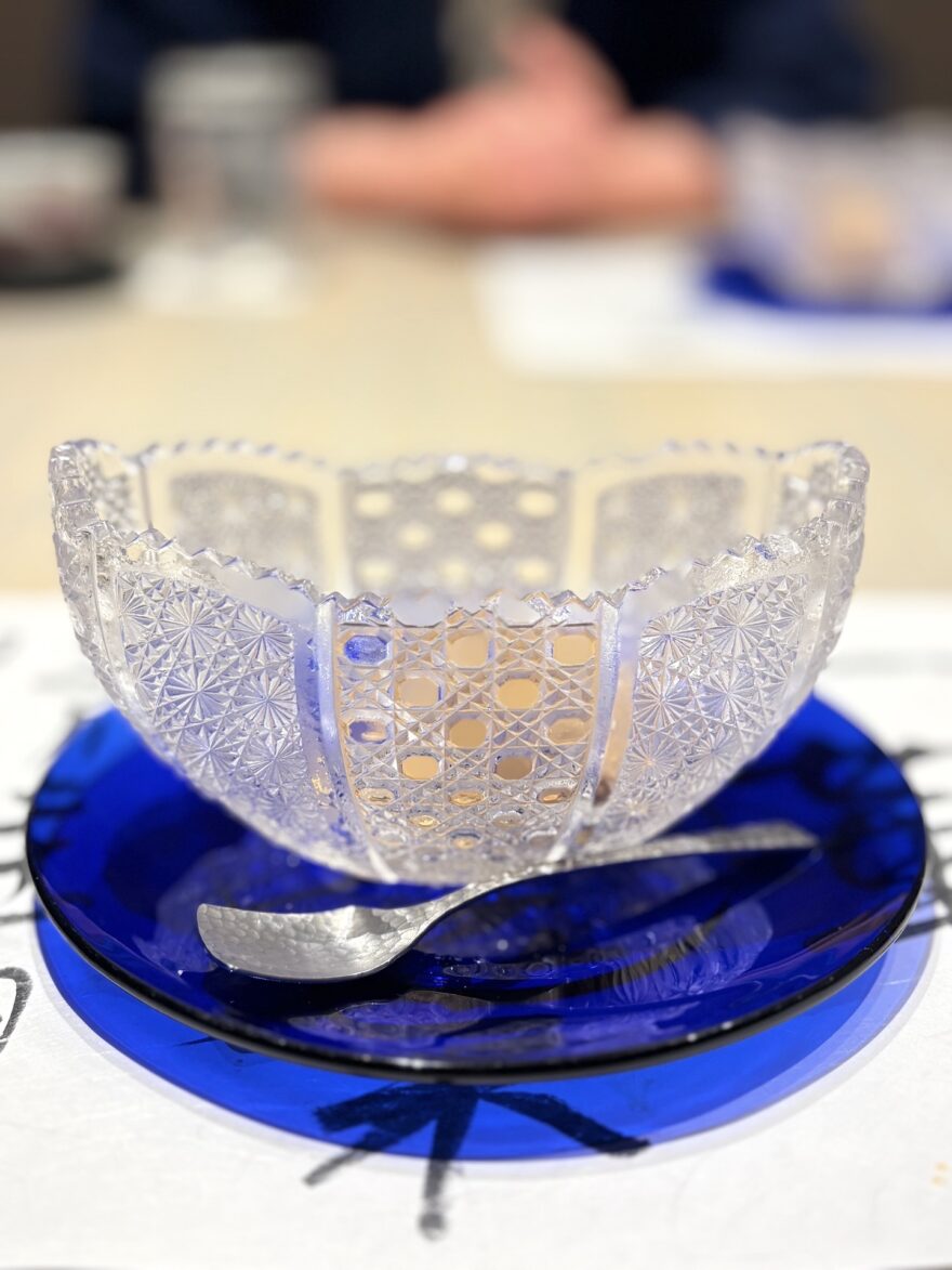 美しいガラスの器で提供されたのは自家製の塩キャラメルのアイスクリーム。